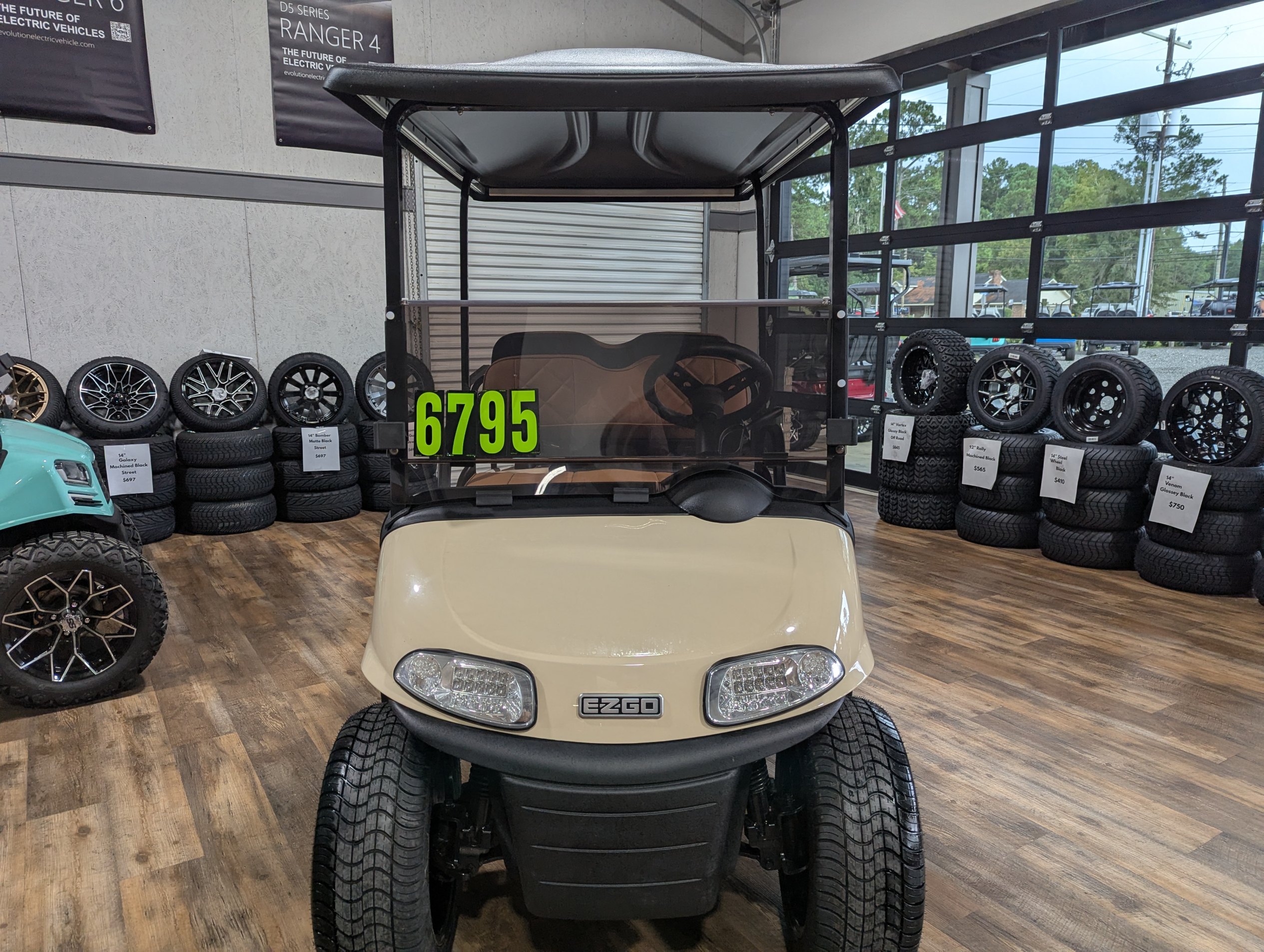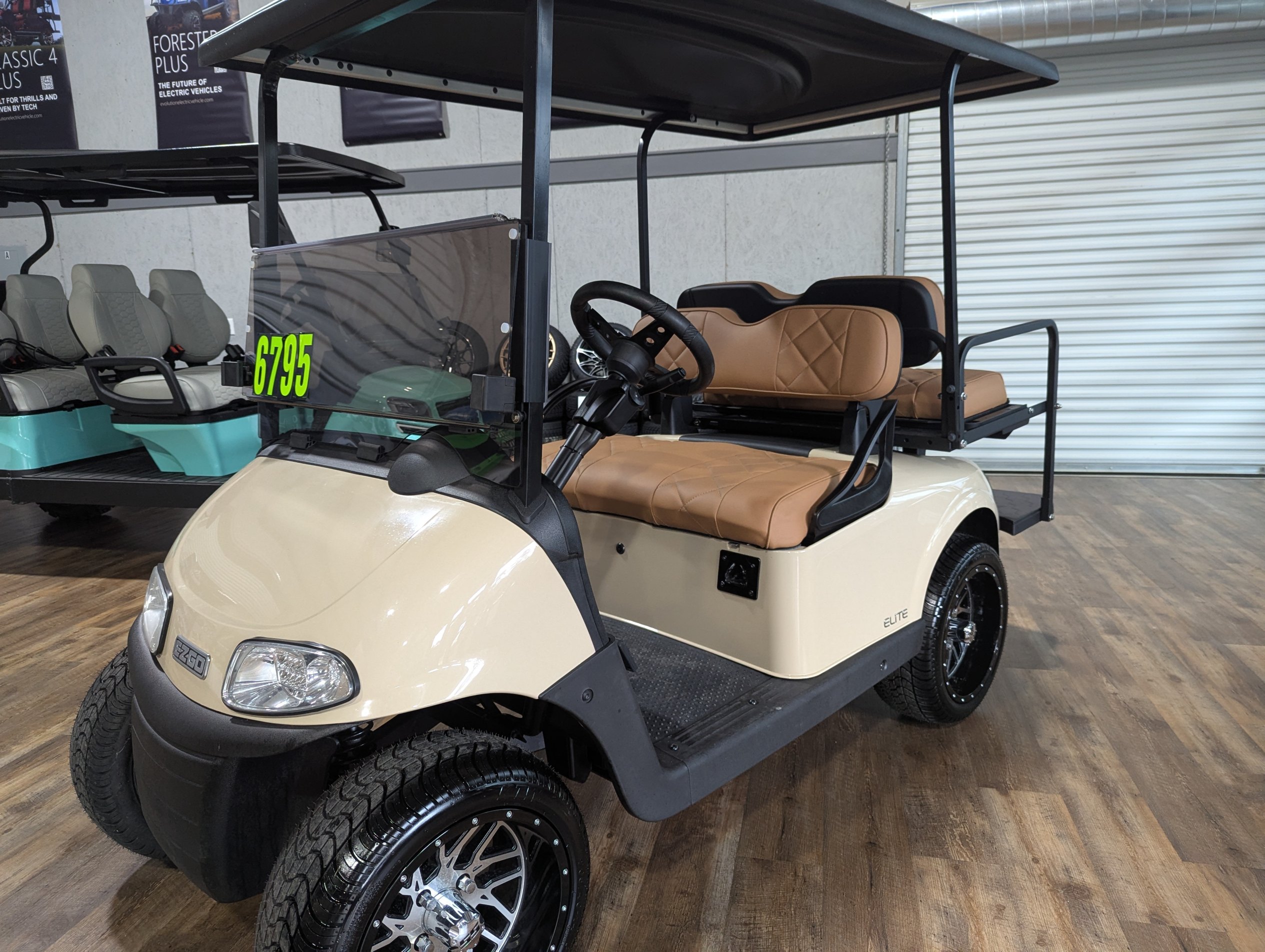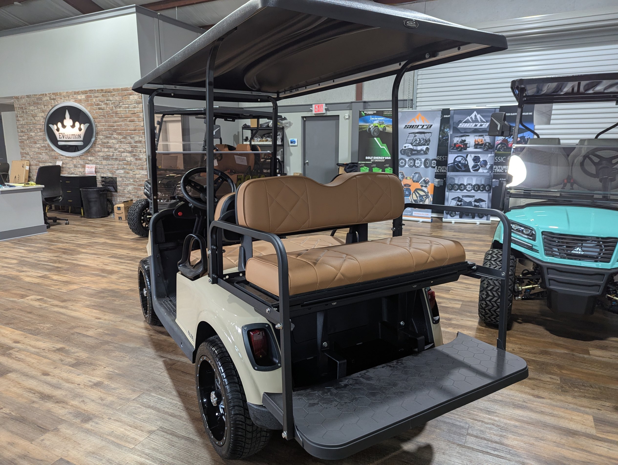 Turn heads on and off the course with this beautifully refurbished 2020 EZGO RXV Elite. Finished in elegant Sandstone with custom diamond-stitched tan seats, this cart blends comfort and style. Outfitted with a dependable lithium battery, smooth ride suspension, and custom wheels and tires, it’s ready for weekends, neighborhoods, or resort cruising.