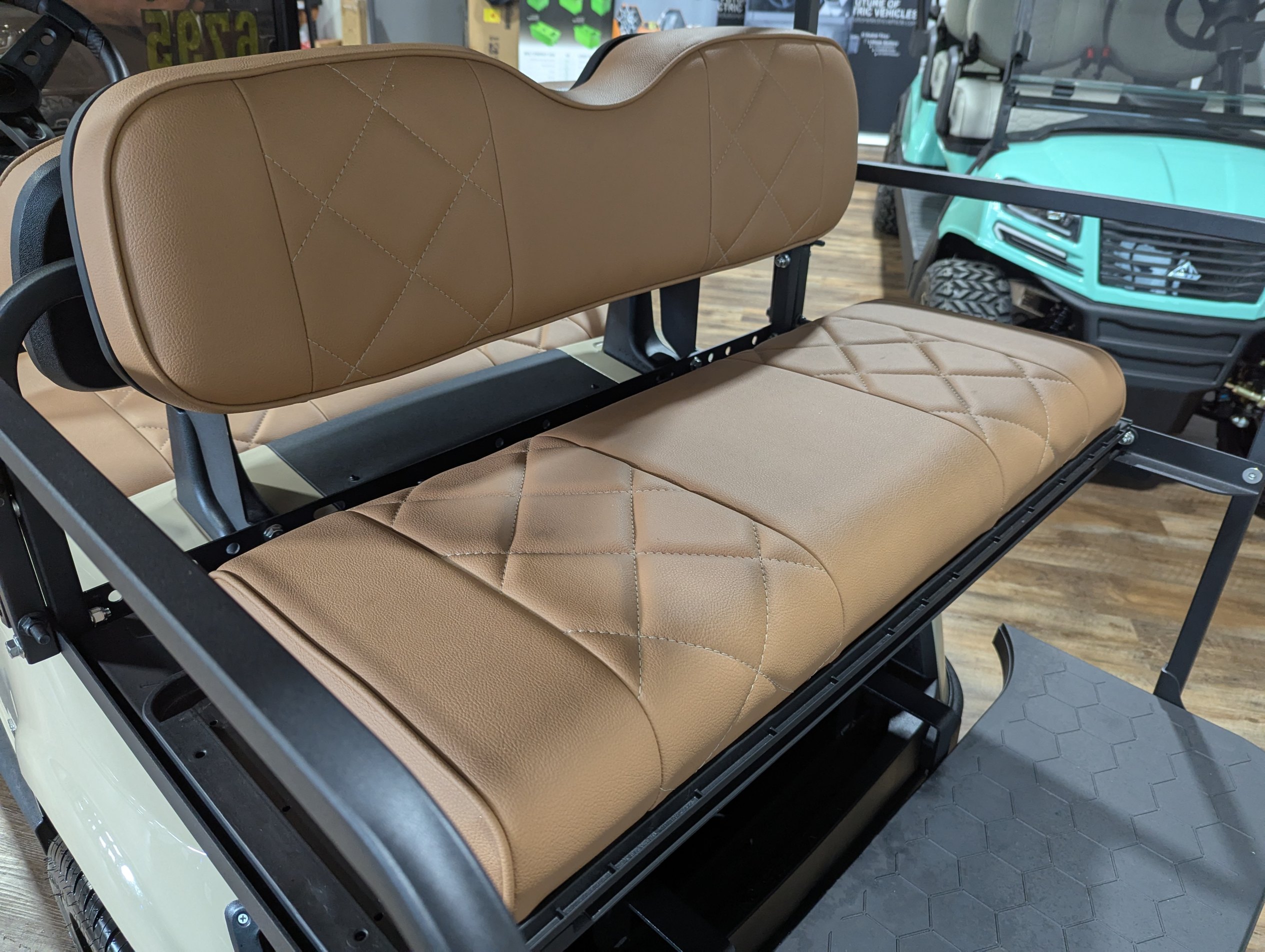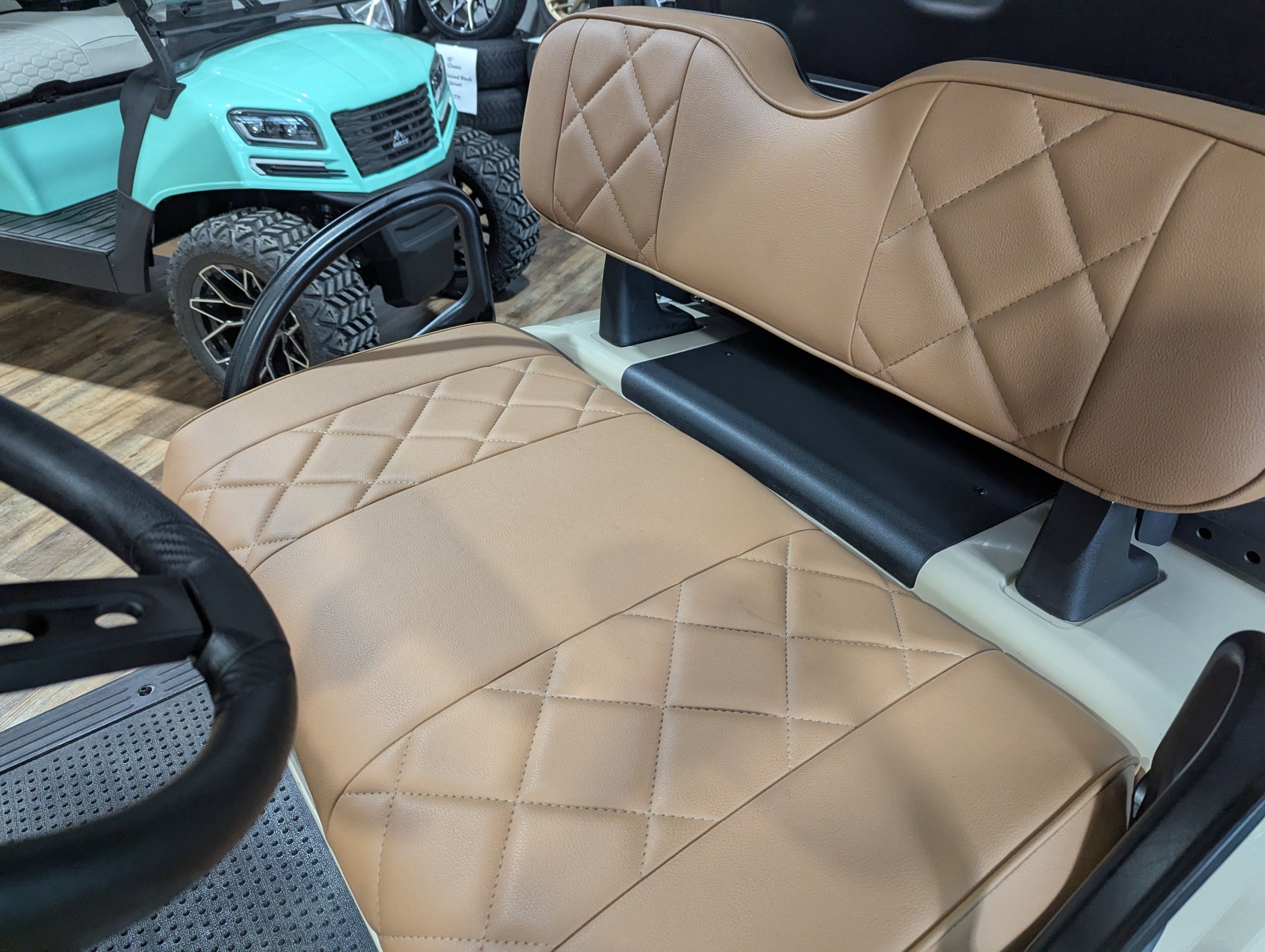 ✅ Custom tan diamond-stitched seats
